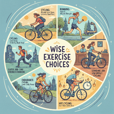- 생활 패턴: 직업 특성상 하루 대부분 앉아 있는다면 코어 강화와 자세 교정 효과가 있는 달리기가, 오래 서 있는다면 충격이 적은 자전거 타기가 더 편안함을 줄 수 있습니다.