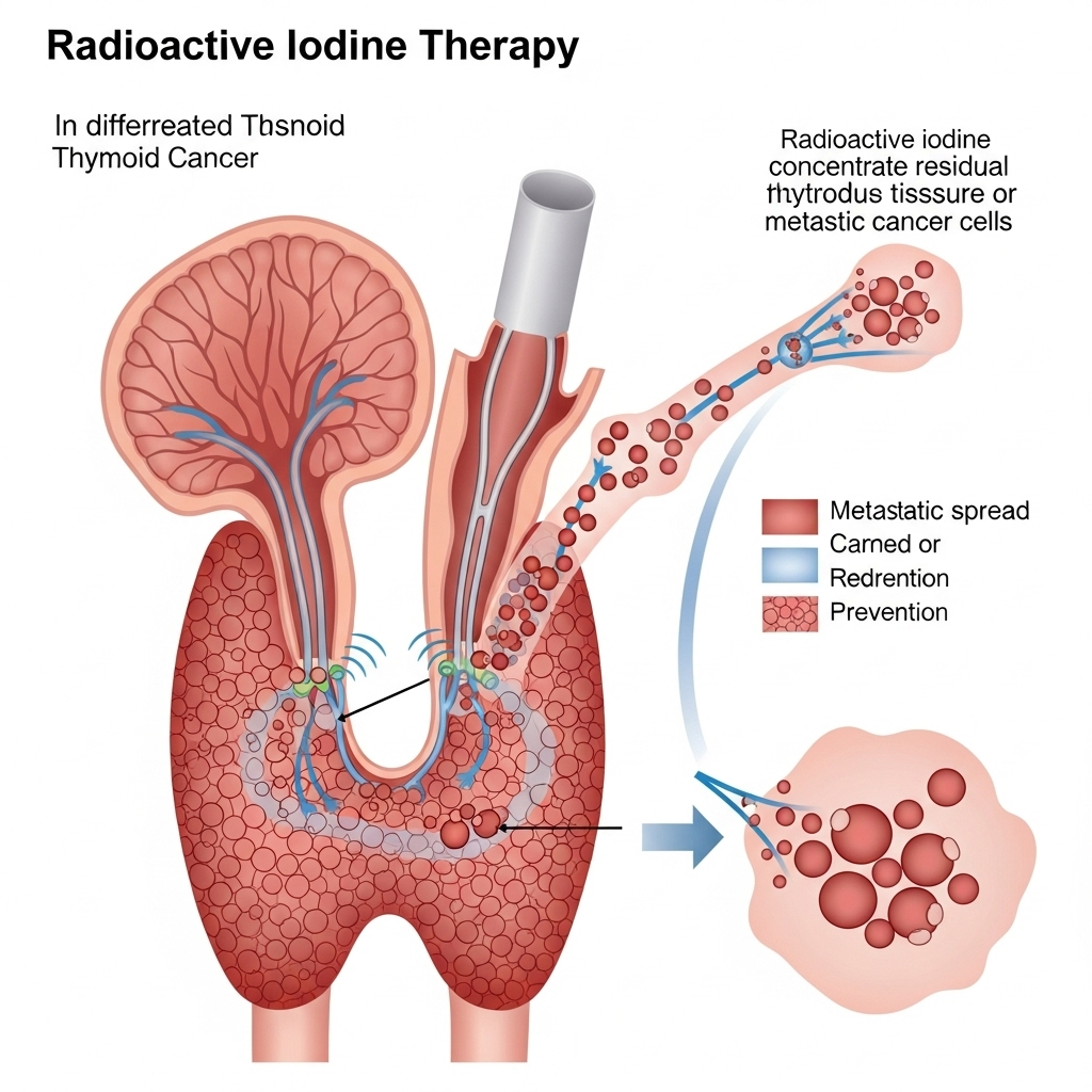 수술 후 잔여 갑상선 조직이나 전이된 암세포를 제거하는 치료법입니다.